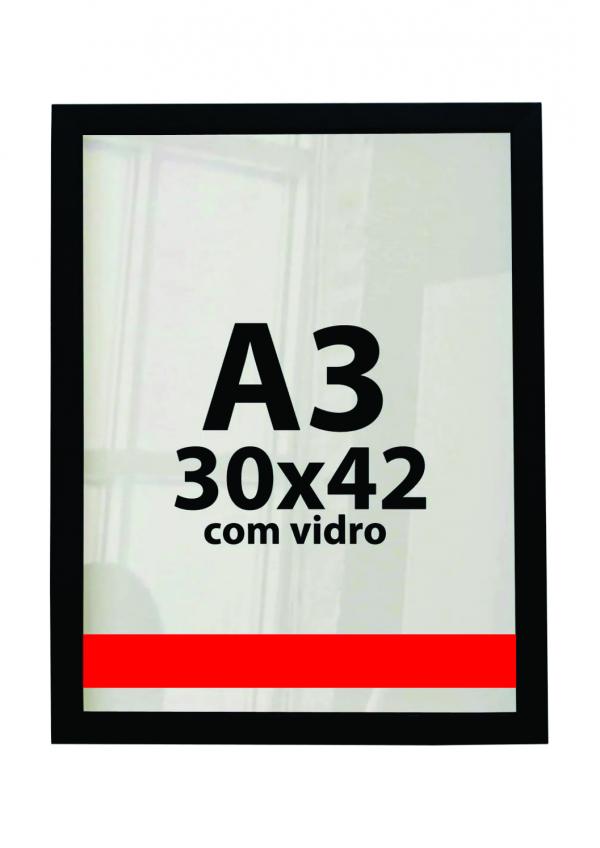 Material: Moldura de madeira lisa e reta - com Vidro - Fundo em mdf